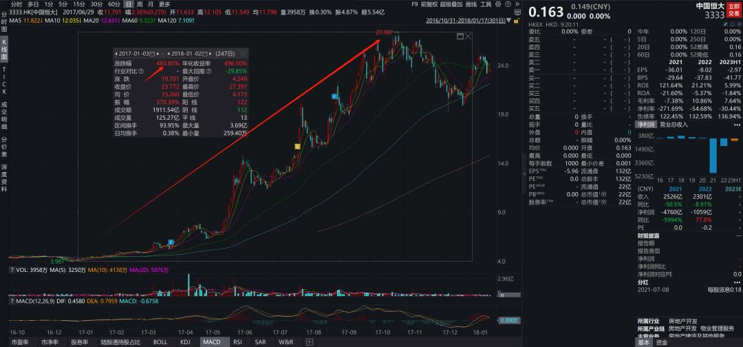 如上图所示,恒大的股价在2017年涨了480%+,究其原因在于,这是一波成功的涨价去库存,大量的美元让国内风险资产价格上涨,最后,房地产的库存得到了有效的去化。
