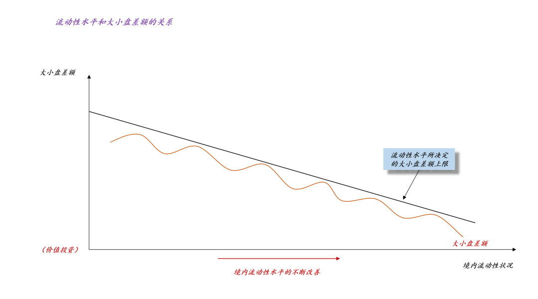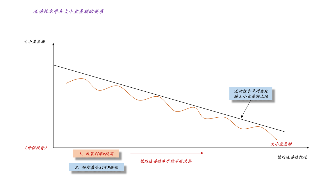2、境内流动性水平越高,大小盘差额的上限越低;
